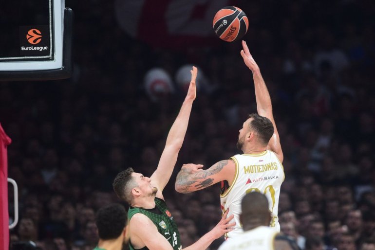 23' - Muči se Zvezda u napadu na startu drugog poluvremena. Ali, prvu trojku za domaćina na utakmici pogodio je Moteijunas.