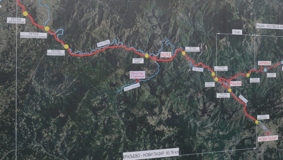 TRASA buduće brze saobraćajnice kroz teritoriju Kraljeva prolaziće u dužini od 48,98 kilometara, kroz Rašku 6,36 i kroz teritoriju Novog Pazara 28,06 kilometara. Uz izgradnju brojnih mostova i prelaza različitog raspona, u oba smera, planirane su dve površinske i 13 denivelisanih raskrsnica - kao "kopče" sa postojećom putnom mrežom - ali i jedan obostrani parking i dva veća odmorišta.