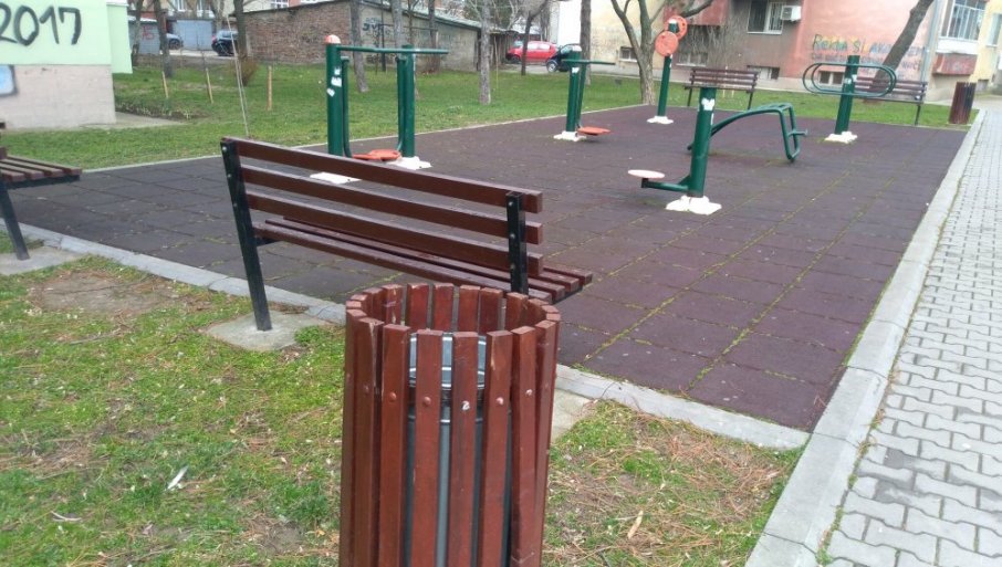 Sprave za vežbanje, klupe i korpe za otpatke sve vreme su u dobrom stanju, jer ih niko ne uništava. Pored njega nalazi se stambena zgrada čiju su novu fasadu vandali ispisali grafitima, ali igralište su zaobišli.