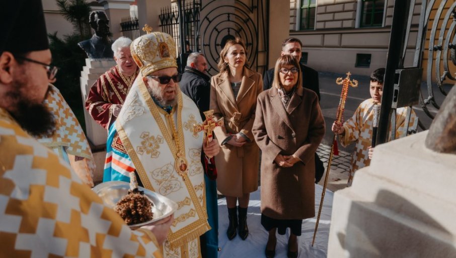 U porti Saborne crkve u Temišvaru, danas su bistu Dositeja Obradovića, svečano otkrili Maja Gojković, predsednica Pokrajinske vlade i Njegovo visokopreosveštenstvo mitropolit budimski i temišvarski Lukijan, potvrdio je Pres biro Pokrajinske vlade.