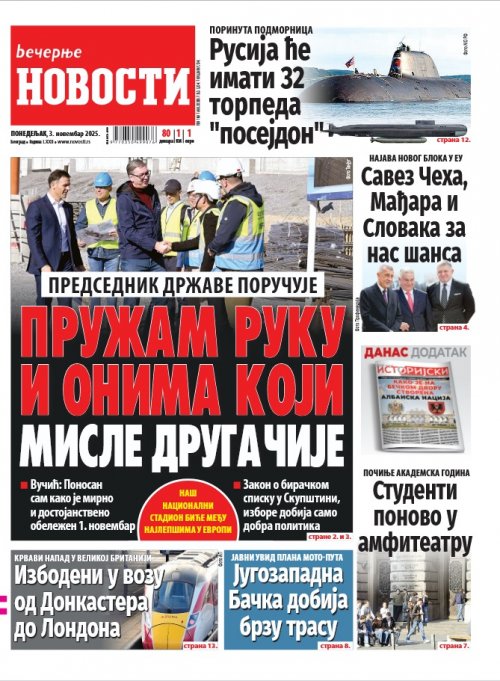 Večernje novosti - Naslovna strana - Štampano izdanje za 03.11.2025.