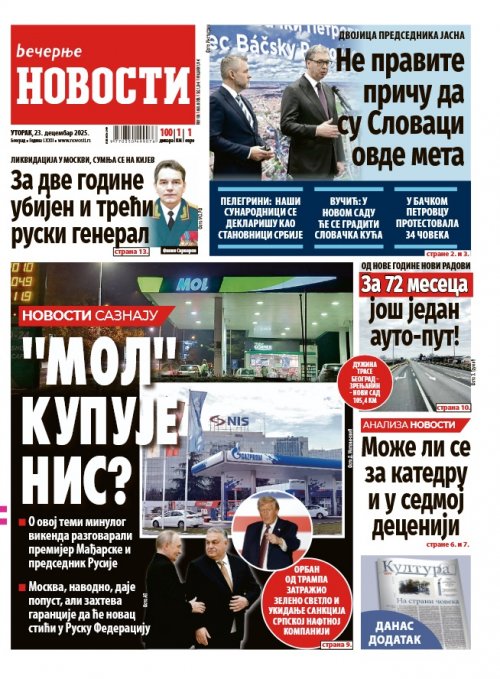 Večernje novosti - Naslovna strana - Štampano izdanje za 23.12.2025.