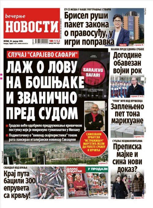 Večernje novosti - Naslovna strana - Štampano izdanje za 30.01.2026.