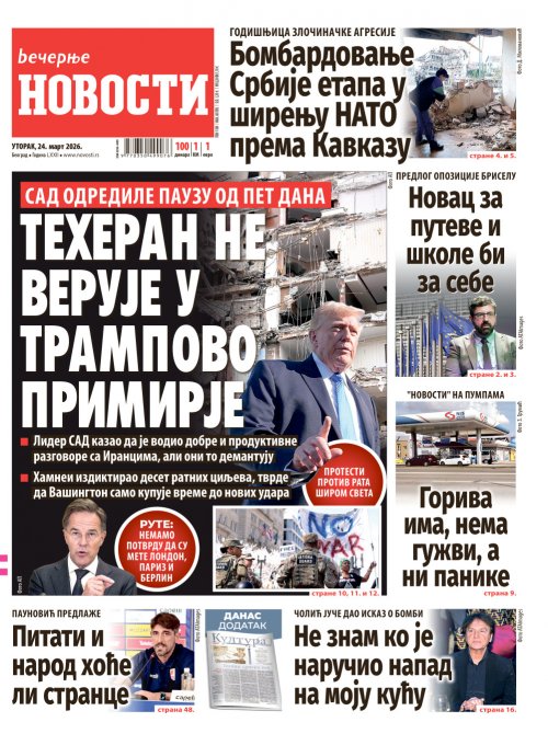 Večernje novosti - Naslovna strana - Štampano izdanje za 24.03.2026.
