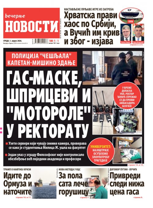 Večernje novosti - Naslovna strana - Štampano izdanje za 01.04.2026.