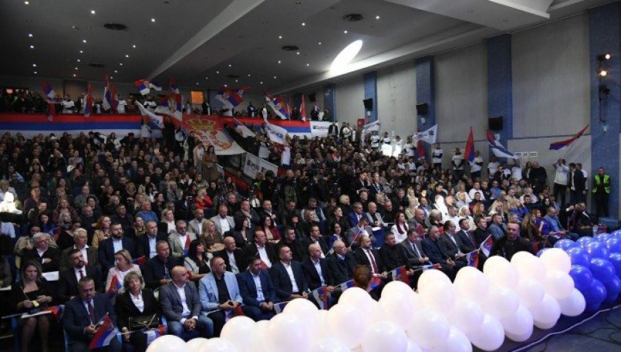 Gotovo hiljadu Srba prisutno je u sali ali i ispred nje, koji ponosno nose srpske trobojke, a čitava sala ukrešena je crveno-plavo belim bojama i zastavama Srpske liste.