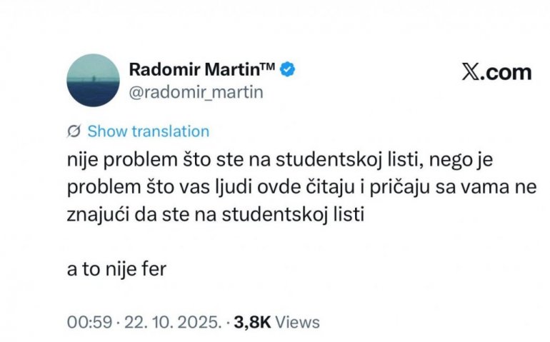 - Nije problem to što ste na studentskoj listi, nego je problem što vas ljudi ovde čitaju i pričaju sa vama ne znajući da ste na studentskoj listi. A to nije fer - ocenio je on.