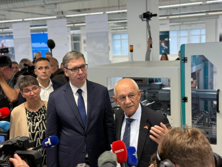 - Nemačka, bavarska tehnologija najbolja na svetu. Otvaraju drugu fabriku, imaju mnogo dobre ljude ovde, što je naše blago. Ja verujem da će da razmišljaju i o trećem pogonu. Voli Jozef Milbauer Srbiju. Ovo je velika investicija, 29,5 miliona evra. Možemo da se pohvalimo da će kod nas da se prave pasoši za 30, 40 zemalja. Godišnje u proseku tri miliona dokumenata izdamo. Zato je svaki napredak u ovom pogledu neverovatno važan. Gledaćemo da preko ovih mašina izdajemo radne dozvole. Nemoguće je da ljudi stignu sve, mašina može sve - rekao je predsednik.