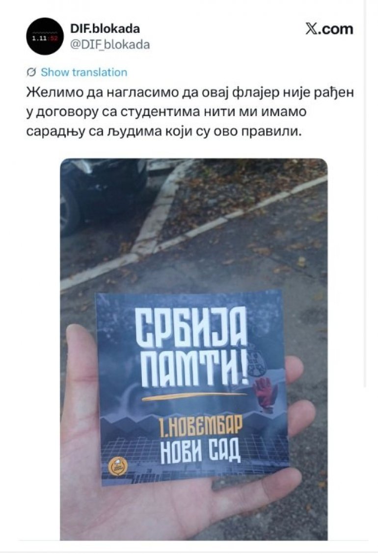 Na društvenim mrežama osvanuo je promotivni materijal za skup sa jasno vidljivim logom „Kreni-promeni“. Time je, praktično, srušena propagandna blokaderska teza da skup u Novom Sadu organizuju nezavisni „studenti“.