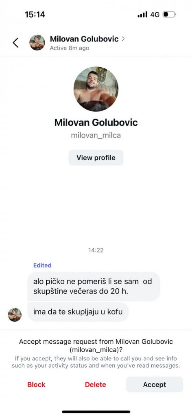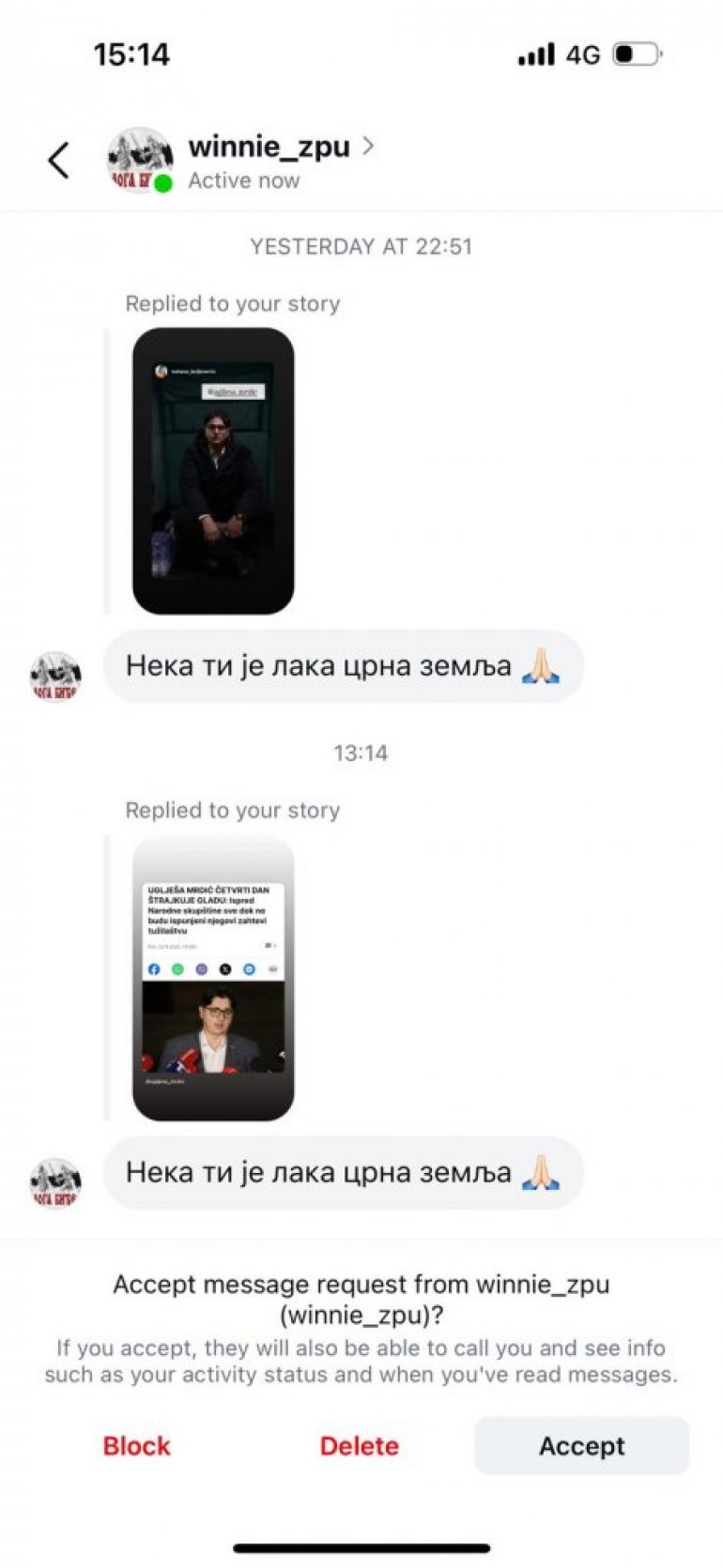 Kako saznajemo, sa nekoliko instagram profila Mrdiću su direktno upućene ozbiljne pretnje po život ukoliko se "večeras do 20h ne pomeri od Skupštine".