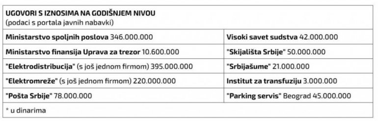 Ova kompanija je ugovore zaključivala s javnim preduzećima, javnim komunalnim preduzećima, ministarstvom/nadležnim upravama, bolnicama predškolskim ustanovama...