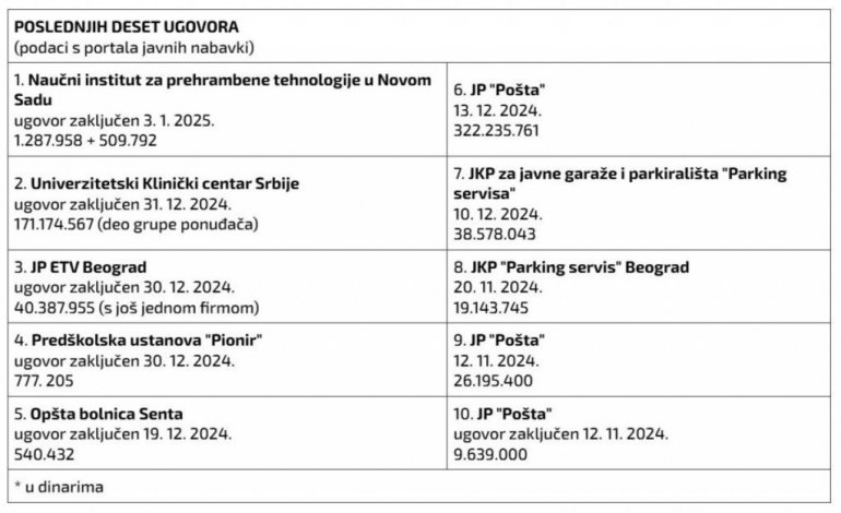 Tako su, na primer, 3. januara 2025. godine, dakle kad su blokade uveliko u toku, dobili dva posla od Naučnog instituta za prehrambene tehnologije u Novom Sadu. U pitanju je osiguranje imovine, vrednost ugovora je 1.287.958 dinara sa PDV, kao i osiguranje ljudi, gde je vrednost ugovora 509.792 dinara.