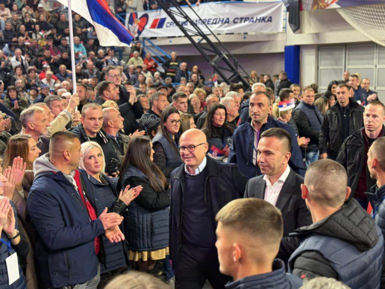 Halom odjekuje "Aco, Srbine", a stigao je i predsednik SNS Miloš Vučević.
