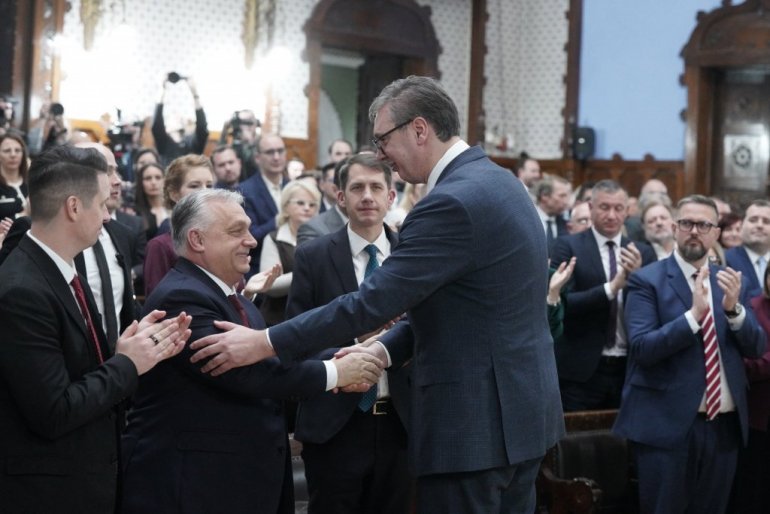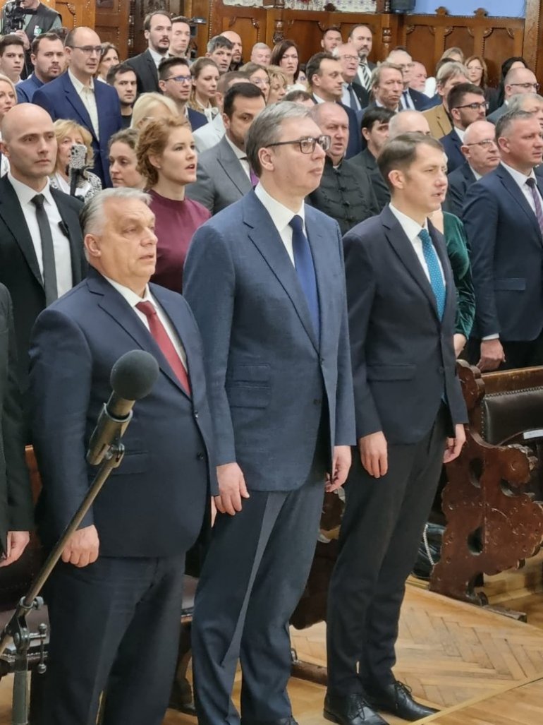 - Tada nismo mogli da znamo da ćemo danas da stojimo ovde zajedno. Srbi i Mađari tokom istorije nisu bili u tako dobrom odnosu kao danas. Naša saradnja je snažna. Naši narodi žive jedan sa drugim, a ne jedan pored drugog. Sve to ne bi moglo da se desi bez predsednika Vučića. To se zove liderstvo, pravo vođstvo. Svi treba da imamo na umu značajnost naše saradnje. Stari svet u kome smo živeli se urušava. To su promene koje su svima vidljive. Zapadna Evropa gubi na uticaju. Evropa i dalje kuje ratne planove, dok mi želimo da pregovaramo o miru. Možemo da se smejemo na sve ovo, ali to nije samo zabrinjavajuća činjenica već i opasna. U našem savezu postoji životna snaga, ali zasebno gledano nismo dovoljno jaki. To je u stvari filozofija saradnje - istakao je.