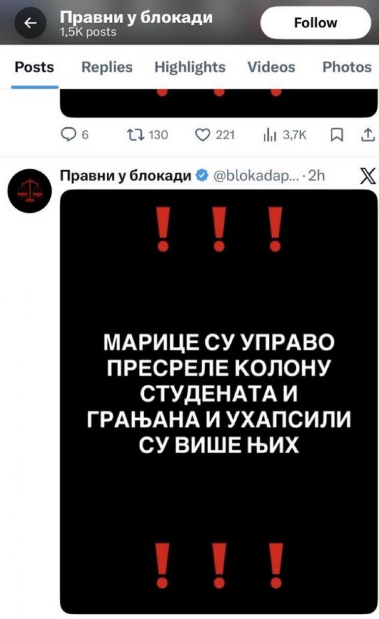 Objavu je potpisao nalog Pravni u blokadi, a zatim ju je – za svaki slučaj – isti taj nalog retvitovao sam sebe, uz dodatne uzvičnike, da bi granjanje shvatilo ozbiljnost trenutka. Jer kad već nema smisla, važno je da bar ima dramatike.