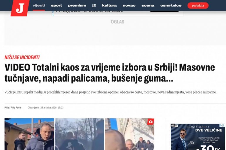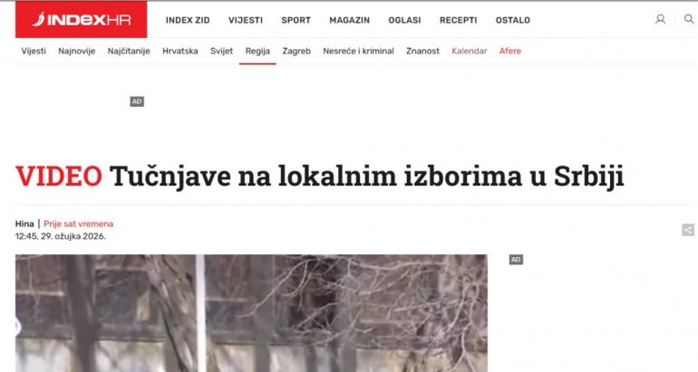 Ovu tezu potvrđuju i pisanja na hrvatskim portalima koji likuju i huškaju na nerede u Srbiji. Iako, u svakom mestu gde se održavaju izbori blokaderi prave haos, napadaju ljude iz SNS pištoljem, biju žene, nasrću na sve političke neistomišljenike, za N1, Novu, i hrvatske medije to je "tučnjava".